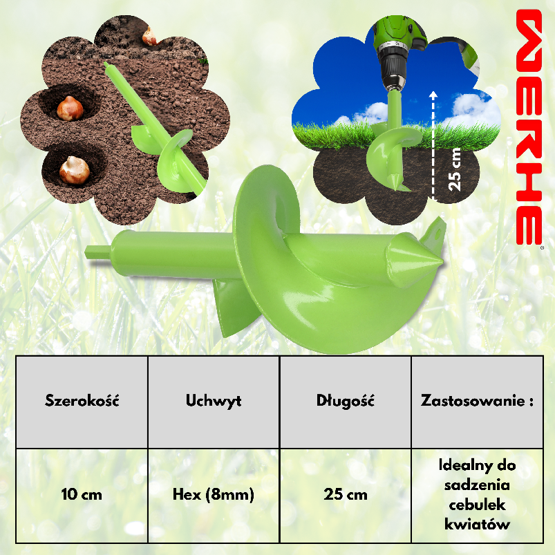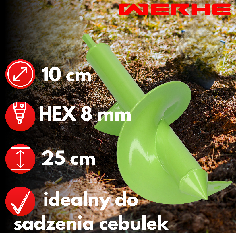 Świder do gleby WERHE 100×250 mm to praktyczne narzędzie ogrodowe, które znacząco przyspiesza wykonywanie otworów pod rośliny i elementy infrastruktury ogrodowej. Dzięki szerokości 10 cm stanowi idealny kompromis między precyzją a wydajnością.