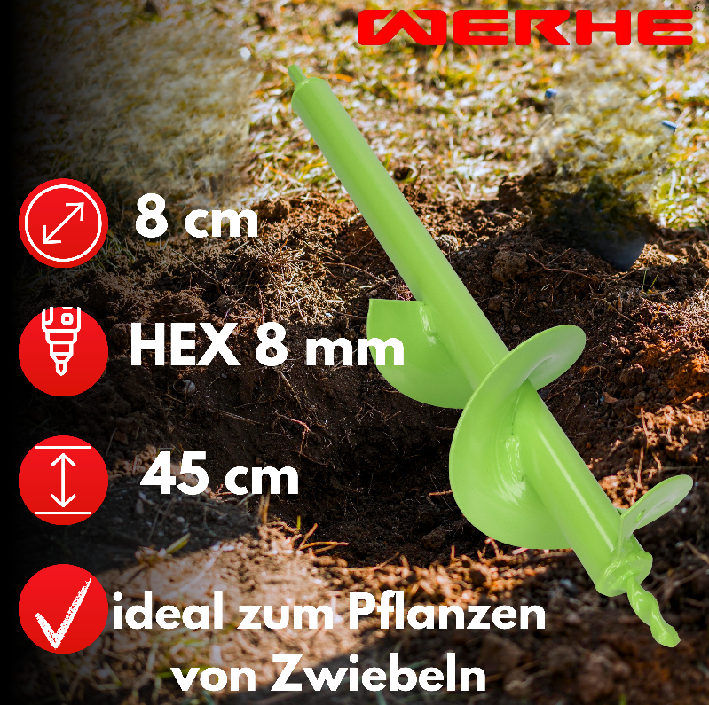 Świder do gleby WERHE 80×450 mm to praktyczne narzędzie ogrodowe, które znacząco przyspiesza wykonywanie otworów pod rośliny i elementy infrastruktury ogrodowej. Dzięki szerokości 8 cm stanowi idealny kompromis między precyzją a wydajnością.